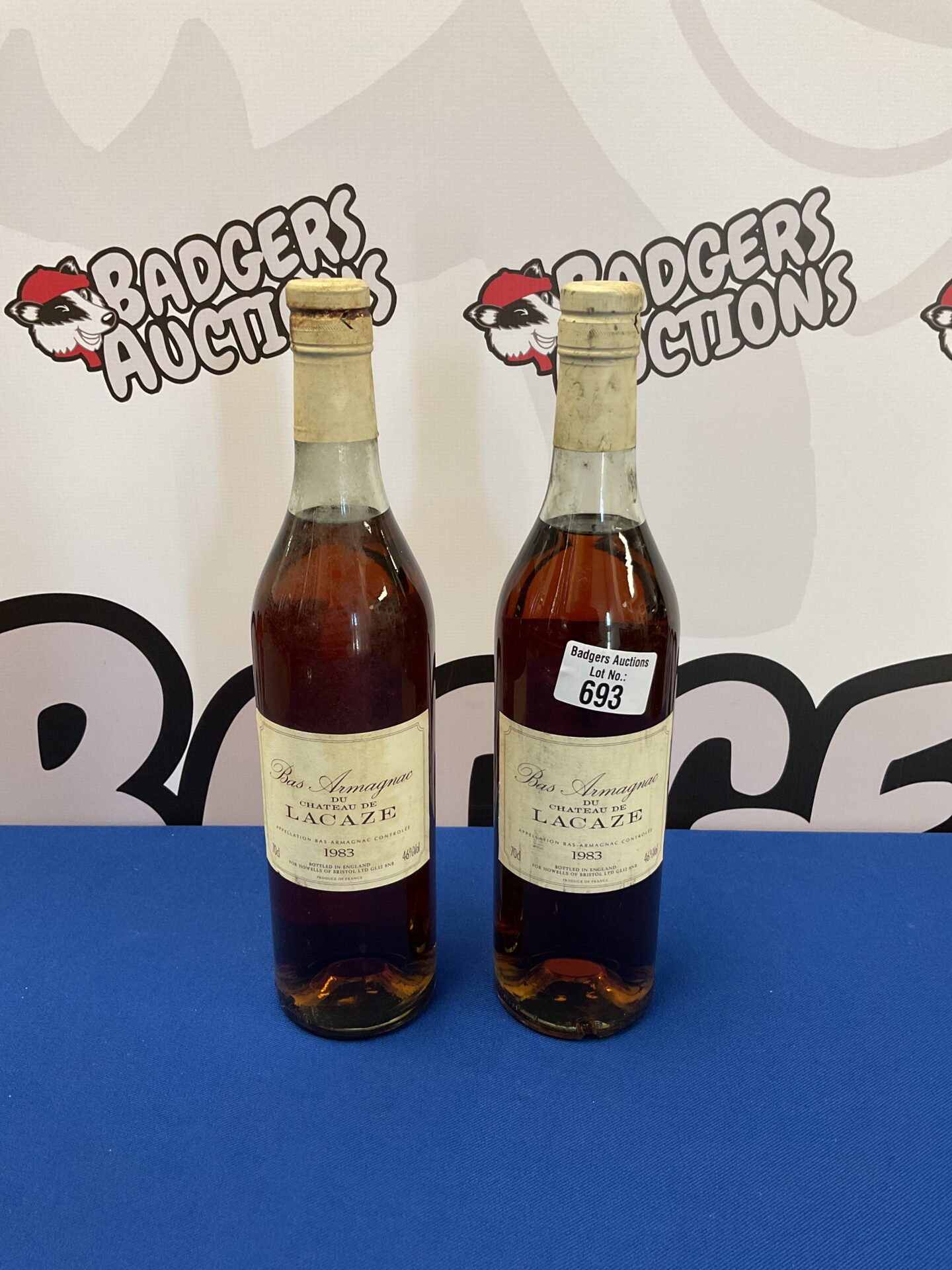 693 2 Bottles Of Bas Armagnac Du Chateau De Lacaze 1983 Wine (labelled For Medicinal Use Only Signed Dr Peter Wheeler)