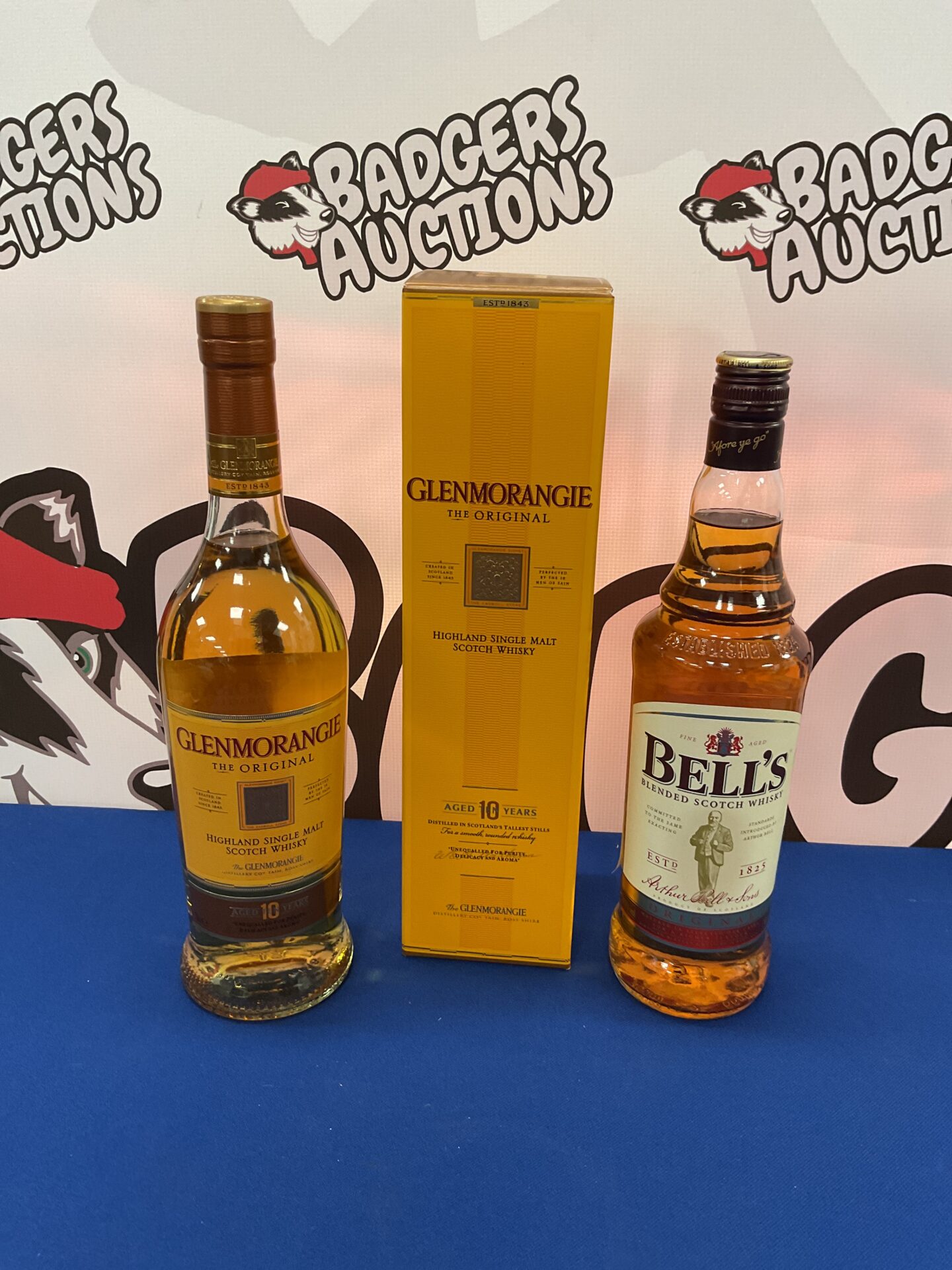 906 Bottle Of Bells Whiskey And Boxed Bottle Of Glenmorangie Single Malt Scotch Whiskey