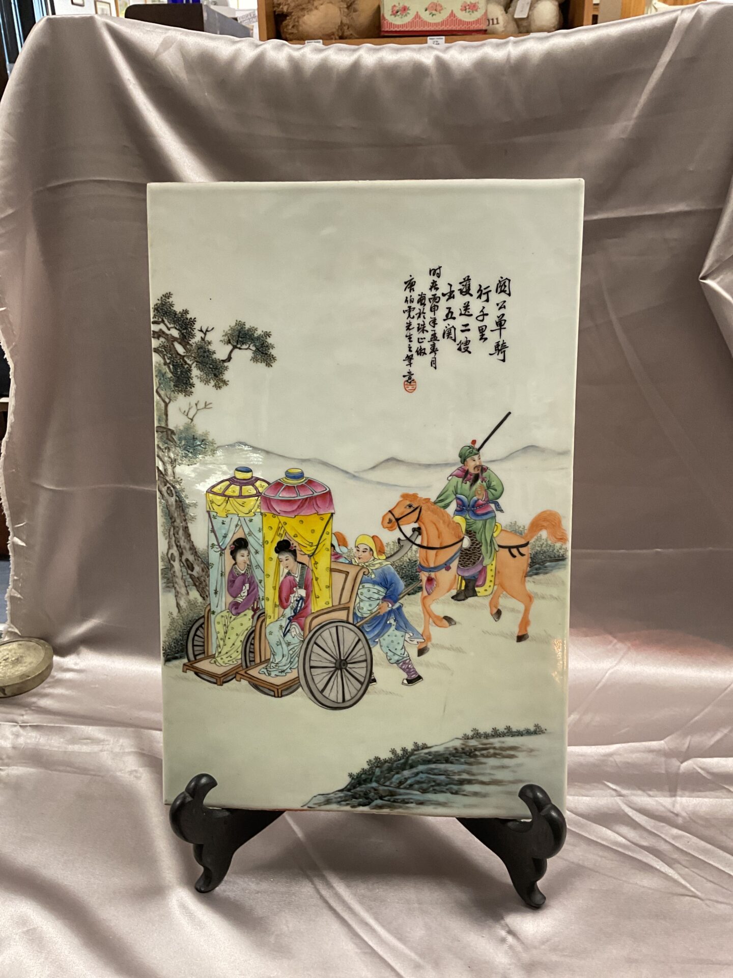 873 Large Chinese Painted Porcelain Tile 10”x14”