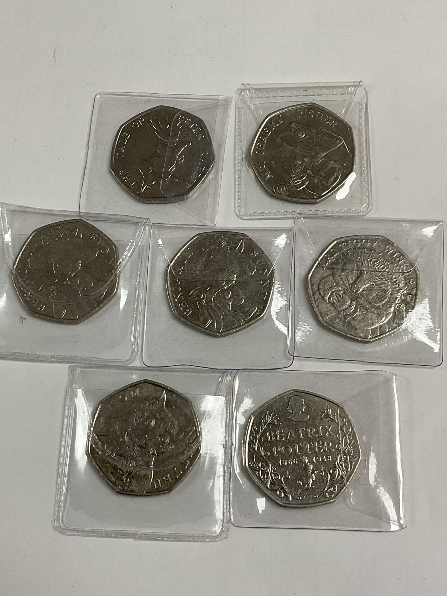 784 Seven Beatrix Potter 50p Coins Inc Jeremy Fisher,ton Kitten Mrs Tiggy Winkle